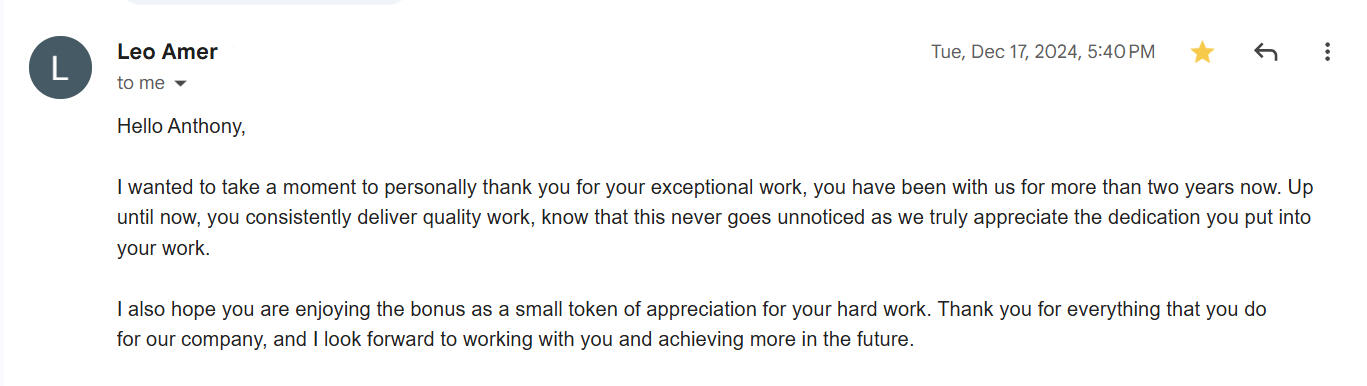 Long-term partnership: By hiring me as your virtual assistant, you gain a reliable long-term partner who is committed to supporting your business needs over an extended period.