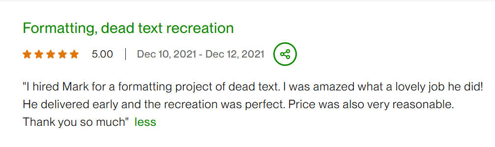 Transparent communication: I prioritize open and transparent communication to ensure a strong working relationship. You can expect regular updates, progress reports, and prompt responses to queries, ensuring that you're always informed and in control.